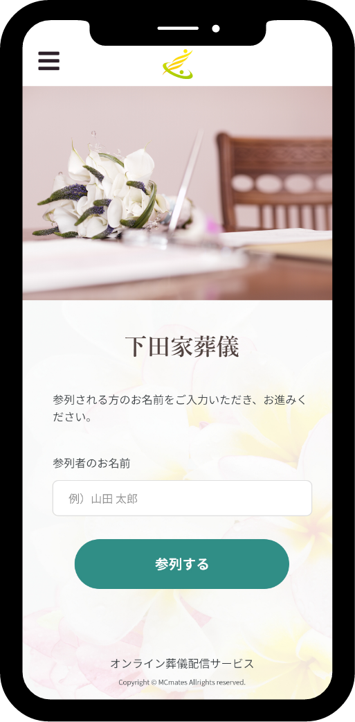 喪主様や葬儀会社から送られてきたQRコードやURLをお伝えいただくことですぐ参列することができます。